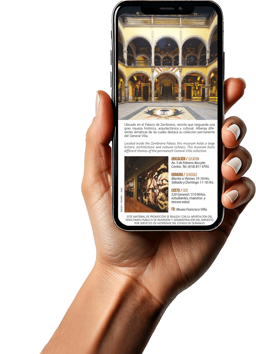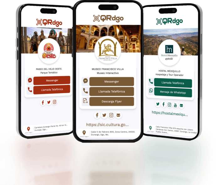 Accede fácilmente a la oferta turística de Durango desde cualquier lugar. Escanea los códigos QR con tu teléfono y explora tarjetas digitales o micrositios con toda la información que necesitas al instante.